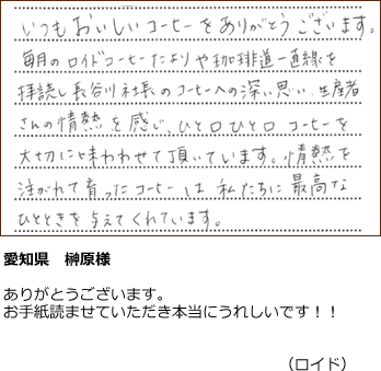 コスタリカのボニージャ氏の農園コーヒー。