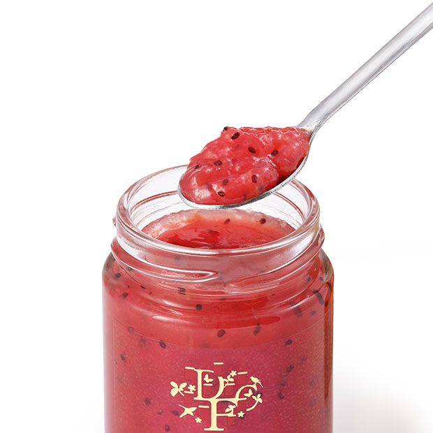 貴重な赤色果肉のキウイフルーツを使用。本来の味を活かすために、甘さはひかえめにしました。フルーティーな風味がたまらない逸品です。華やかなジャムはギフトにもおすすめです。商品情報