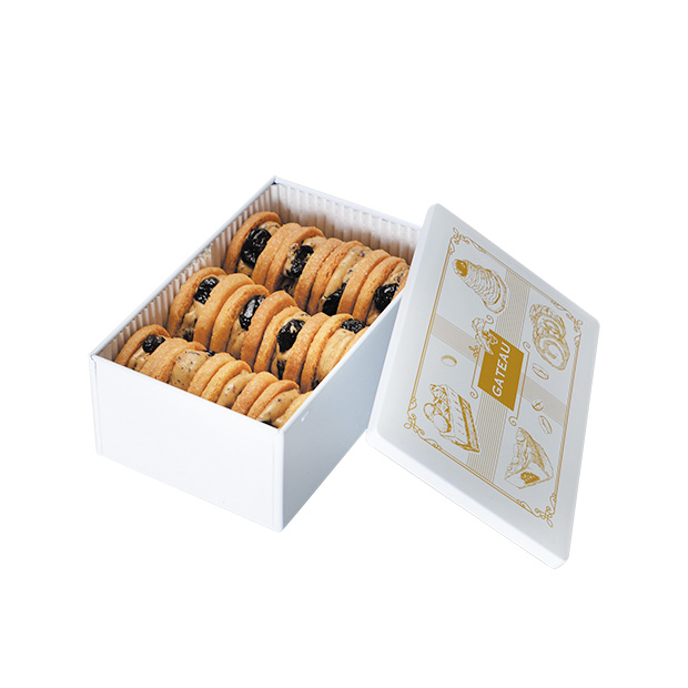 ほろほろサクサクのサブレ生地に、北海道産バターを使用したコーヒー風味のバタークリームと、丁寧に熟成させたラムレーズンを挟んで、オリジナルのバターサンドクッキーを作りました。冷蔵庫から少し出しておくとクリームのくちどけがなめらかになり、また違った味わいをお楽しみいただけます。缶入りなので、ギフトにもおすすめです。