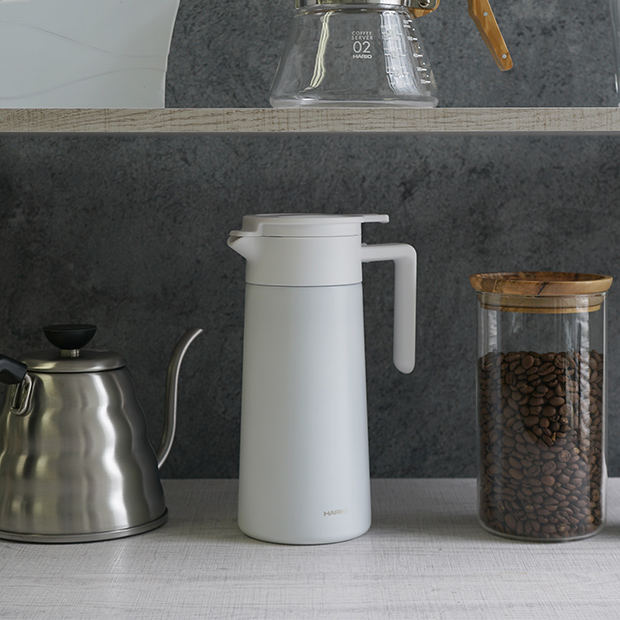 温かい飲み物と冷たい飲み物の美味しい温度を長時間キープできる卓上保温ポットです。本体はステンレス製で真空断熱構造のため保温性に優れており、内側にはセラミックコーティングが施されているので、金属臭がしにくくコーヒーの香りを損なうことなくお楽しみいただけます。また、フタは上下に分解可能なので、お手入れも簡単です。商品情報