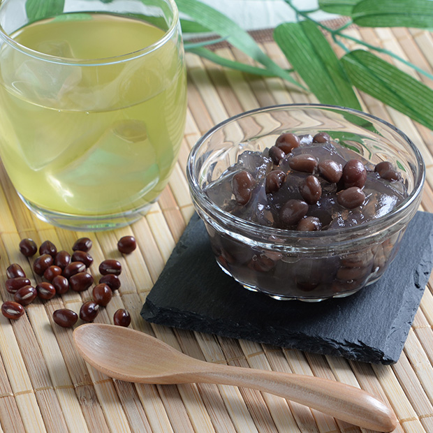 やさしい甘さと豆のふっくら食感が楽しめる寒天ゼリーです。寒天と本くず粉を使用した、ふるふるとした食感が特徴。舌触りがなめらかで、喉越しが良く、さっぱりと食べられるおやつとしておすすめです。商品情報