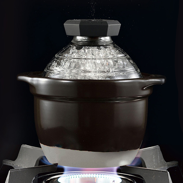 本体は、MADE IN JAPANの萬古焼。鍋の形状をラウンド型に、鍋底に厚みを持たせることで、火加減調整をしなくても炊きむらなく、ふっくら美味しく炊き上げることが出来ます。