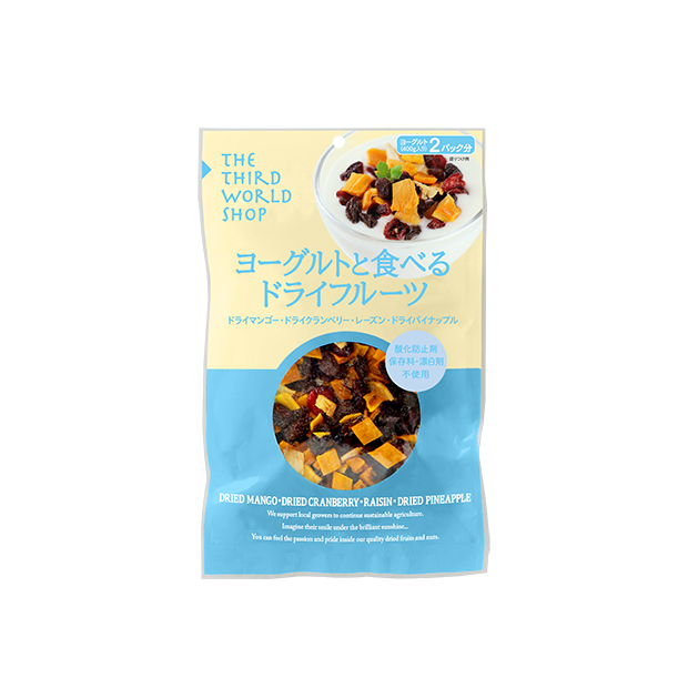 細かくカットされたドライマンゴー、ドライパイナップル、レーズン、ドライクランベリー、4種類のオーガニックドライフルーツをミックスしました。自然な甘みがヨーグルトにマッチし、お砂糖などを加えなくてもそのままお召し上がりいただけます。