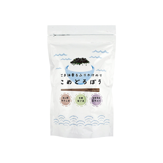 伊勢湾産の素干しのりに、国産なたね油、圧搾ごま油、有機いりごま、海の精のやきしお、国産筋青のりを加えました。