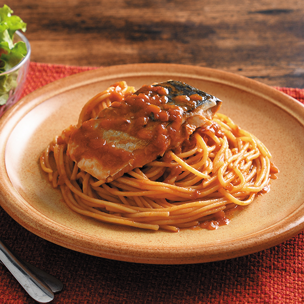 さばと野菜のトマトパスタソース